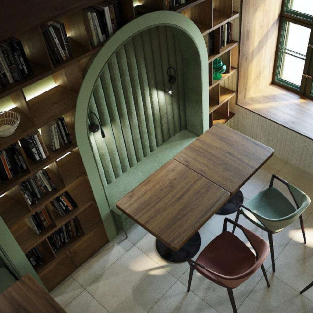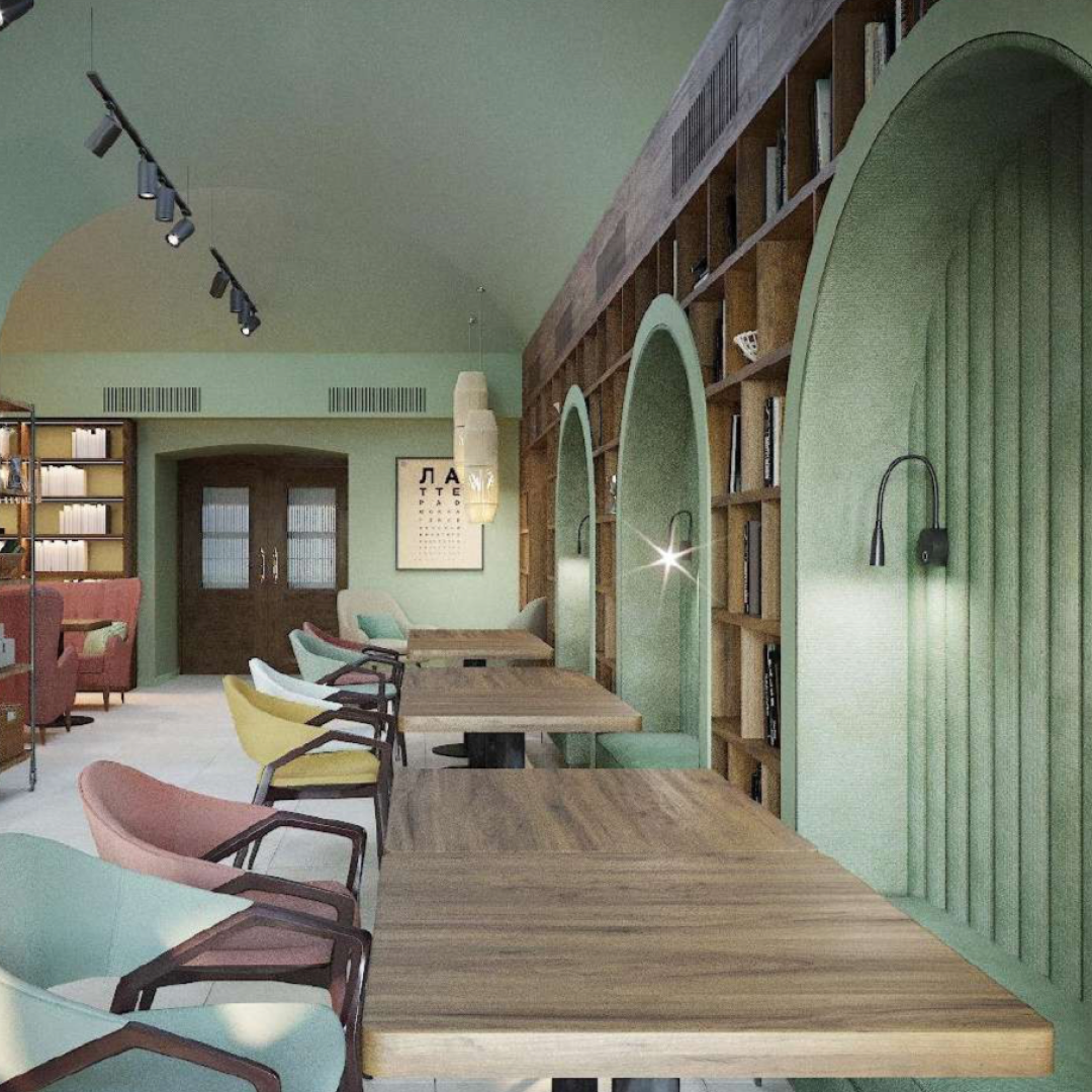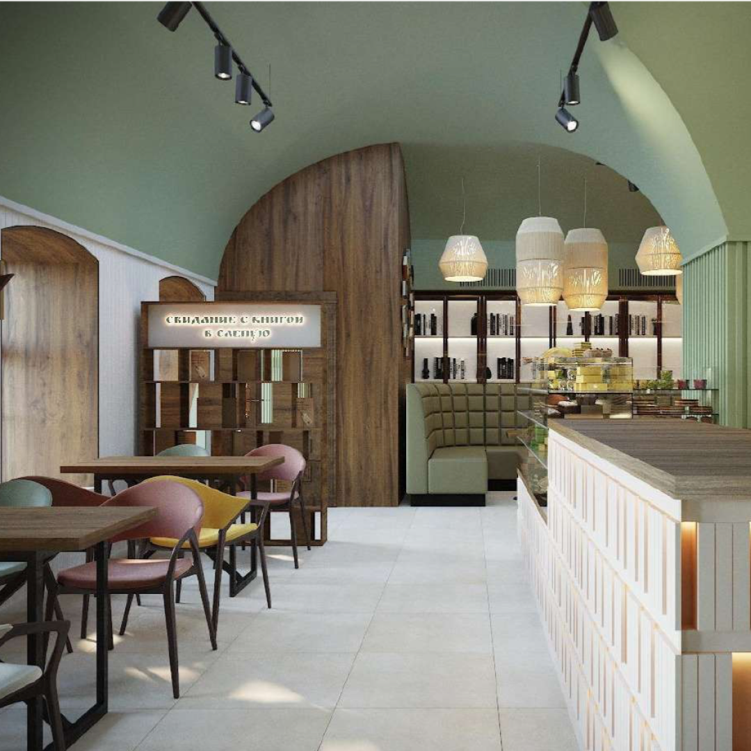 Финалистка курса "Кафе 1.0". Дизайн-проект бук кафе "Переплёт".