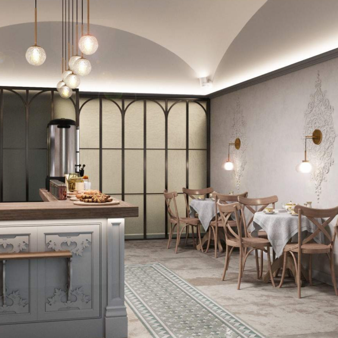 В течение 2-х месяцев под чутким руководством наставников вы будете обучаться и сразу применять знания при проектировании кафе, расположенного в сердце объекта культурного наследия "Новая гостиница Лавры" в городе Сергиев Посад.